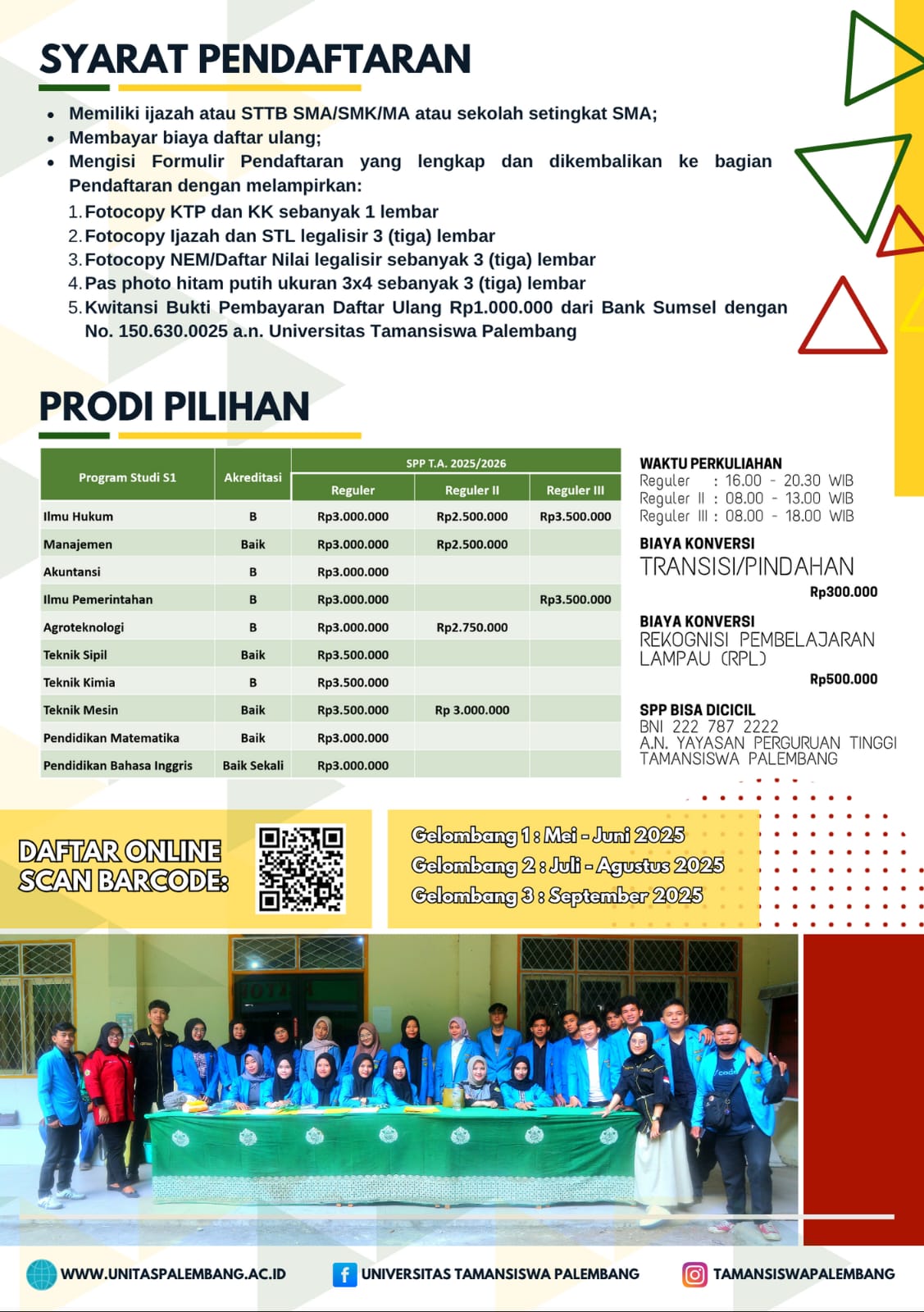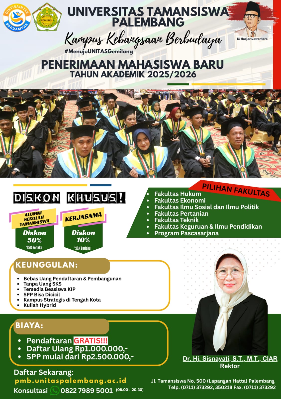 Pendaftaran Online : https://pmb.unitaspalembang.ac.id/
